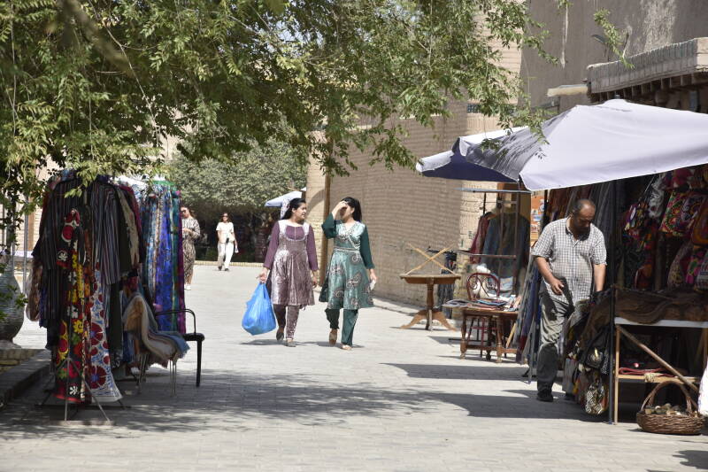 Kmalu sva ugotovila, da najin plan omogoča nekaj manevrskega prostora, zato sva kupila karte za vlak do Bukhare. Ta je dobre 2 uri vožnje oddaljena od Samarkanda. Ponuja še bolj izjemno staro mestno jedro, ki so pred kratkim res lepo obnovili, ulice pa namenili lokalnim obrtnikom, kjer lahko prodajajo svoje raznovrstne izdelke. Vse skupaj daje vtis, da si zakorakal nekaj tisoč let nazaj v čas. Za moje pojme je morda celo preveč urejeno. Sprehajati se skozi ulice, ogledovati si vse možne izdelke ter vmes pojesti ogromno odlične in poceni hrane je bilo res prijetno. A po dnevu ali dveh nama je nekako zmanjkalo idej kaj početi. Tako sva se zapeljala še šest ur bolj severozahodno do Khive.