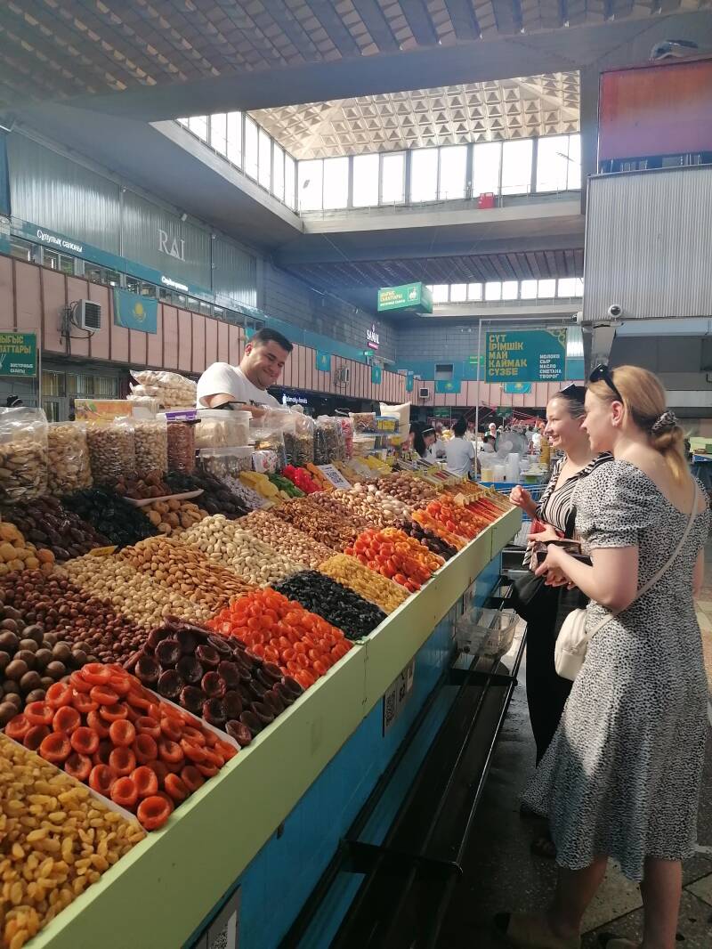 Almaty kot mesto je res fascinantno. Predvsem pa ogromno, varno in presenetljivo čisto, z urejenim javnim prevozom. Je izrazito multikulturno, kar je moč zaznati tako po raznolikih obraznih potezah tamkajšnjih prebivalcev, kot tudi po načinu oblačenja (hijabi in kratke hlače gredo z roko v roki in noben nikogar ne gleda po strani). Obiskale smo nekaj parkov, tržnico oz. bazar, prvič poskusile njihovo hrano. Večer smo zaključile v stilu: naključen starejši gospod se je ponudil, da nas zapelje nazaj do naše nastanitve z njegovim precej ubogim avtom. Naš avtobus je namreč močno zamujal in ni bilo videti, da se bo kaj kmalu prikazal. Seveda gospod ni znal niti besedice angleško, pa smo vseeno obdelali vse od kje smo, kdo smo, kaj delamo in seveda vse o nekdanji Jugoslaviji. V zameno za 15 min vožnje je želel le 1 €, po našem vztrajanju je le pristal in sprejel 3.